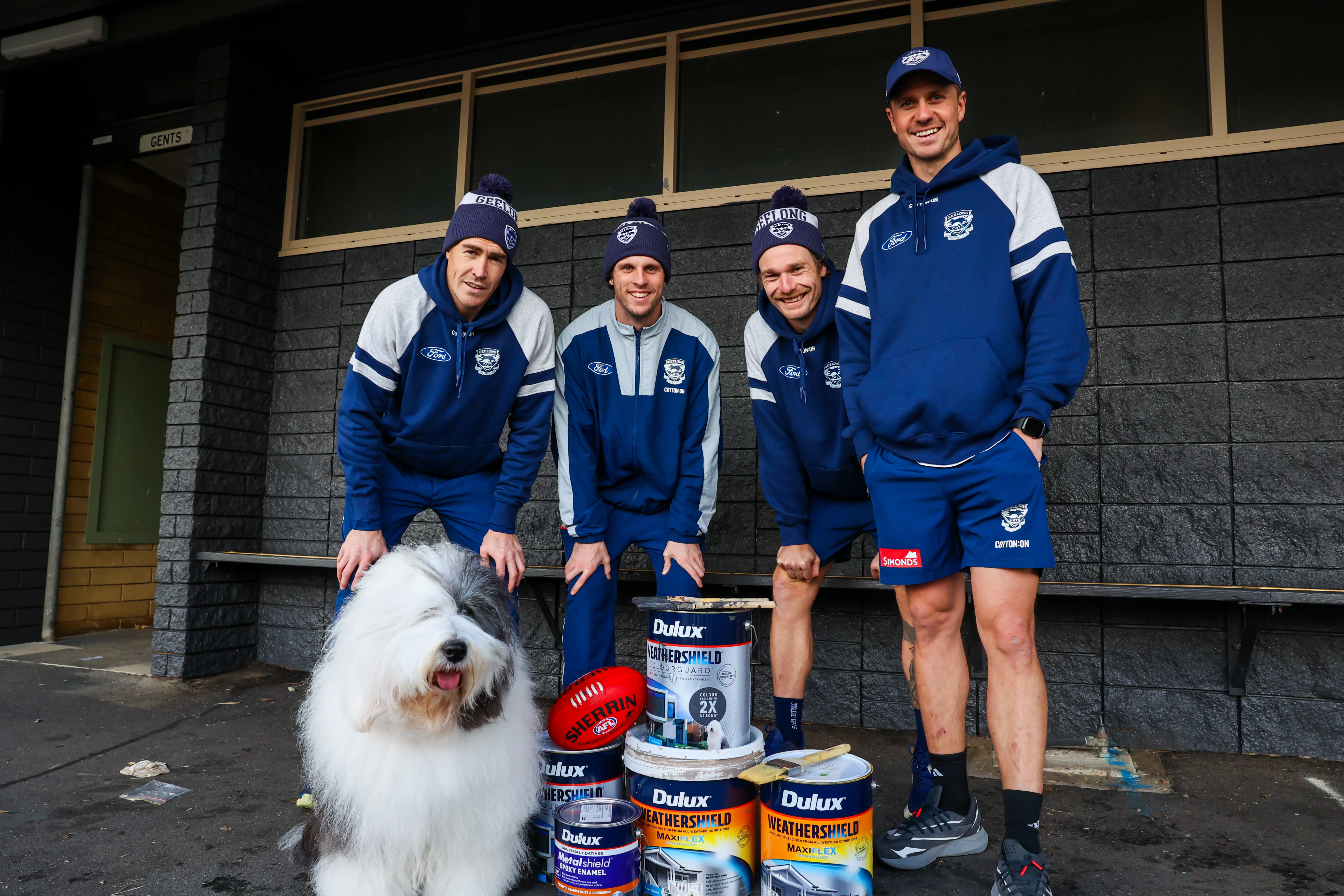 We were super excited to support the repainting of Portarlington Football Netball Club. With the Dulux dog overseeing work, Cats players Tom Stewart and Mitch Duncan joined club volunteers to transform Portarlington's facilities in time to celebrate its 150th birthday in August 2024.