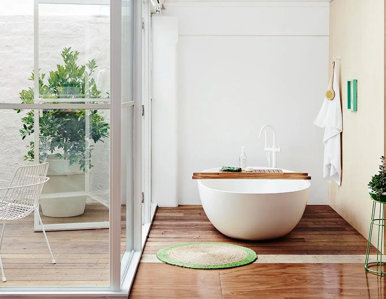 Adding a natural element can induce an effortless sense of luxury in your bathroom. Beautiful botanic tints and warm neutrals like sandy beige, sage green or pale pink can immediately inject feelings of tranquillity and relaxation.