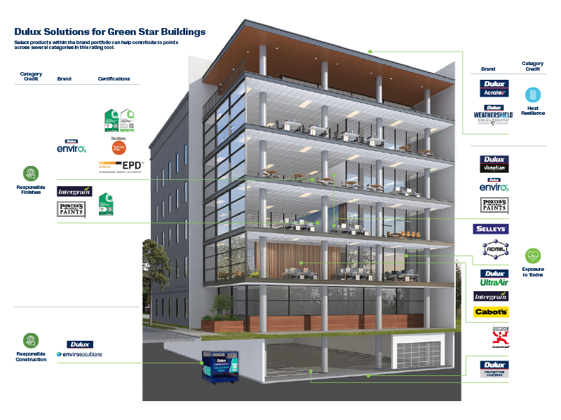 Dulux has developed the Green Star Buildings Rating Tool Solutions guide.