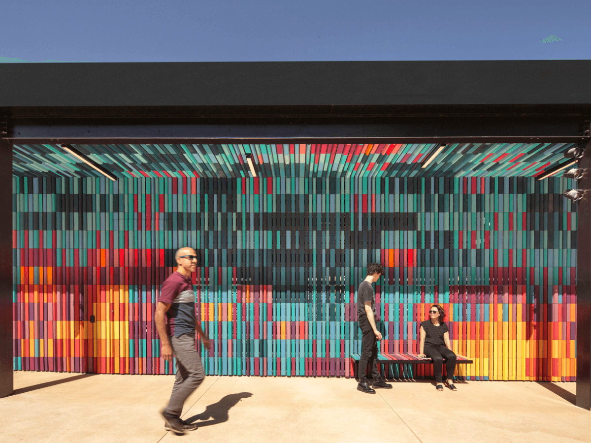 UOM Southbank – End of Trip is part of a wider development plan for transforming educational precincts with both contemporary and heritage architecture. Using site cues, six key colours emerged with another eight intermediate colours added between. These combinations transition between subdued and intensely coloured moments, while the facade uses vibrant colours.