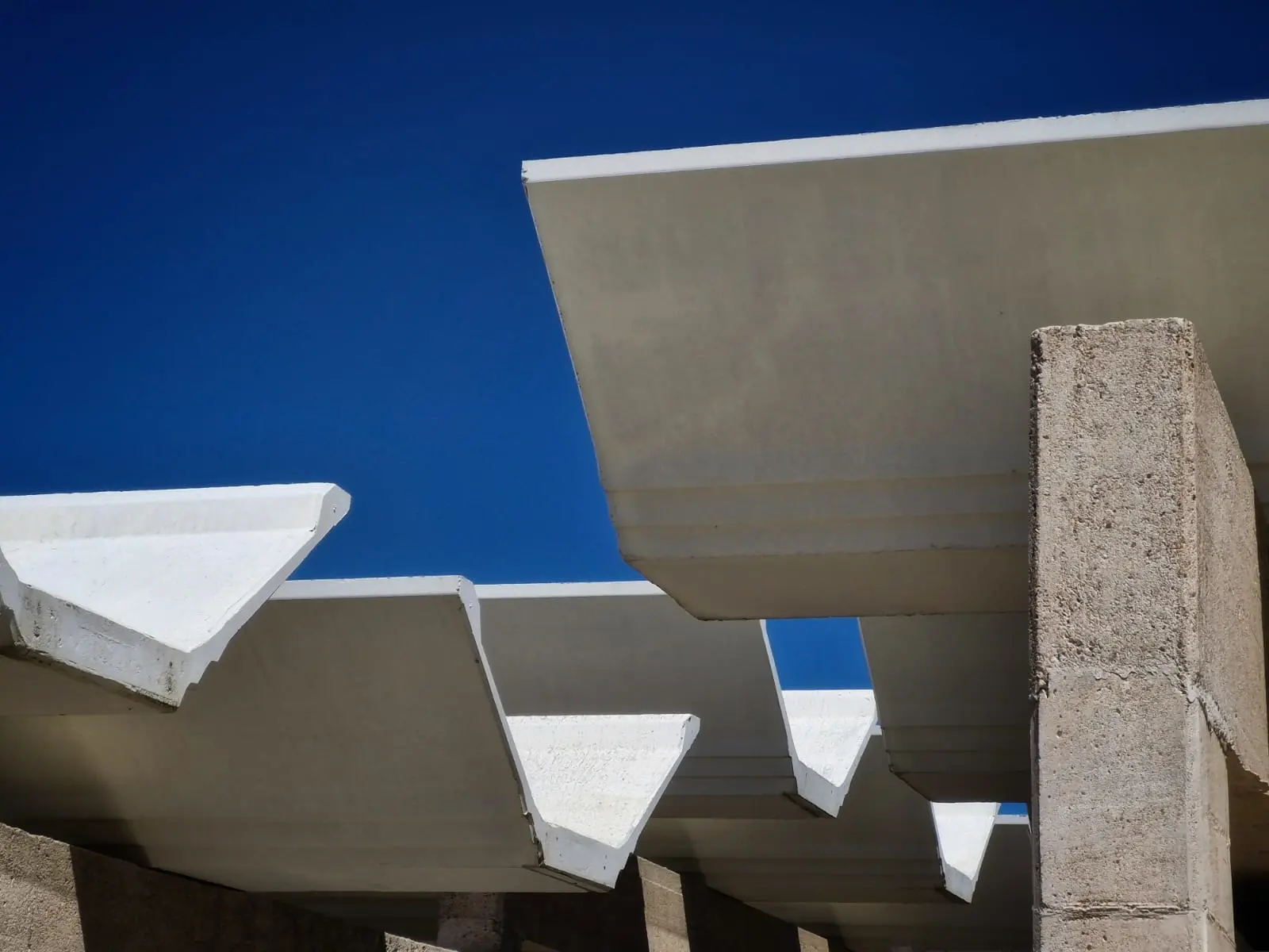 In the town of Castromonte, we visit the municipal pools undergoing a fit-out for the coming summer. Overhead prefabricated beams provide shadows across the walls of local sandstone reclaimed from the fences that used to bind the lot they now inhabit.